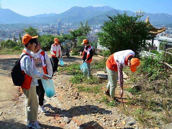 12月1日,为迎接第33个“12·5国际志愿者日”,工艺美术学院志愿者服务队前往枫亭镇塔斗山风景区开展绿色环保行动。