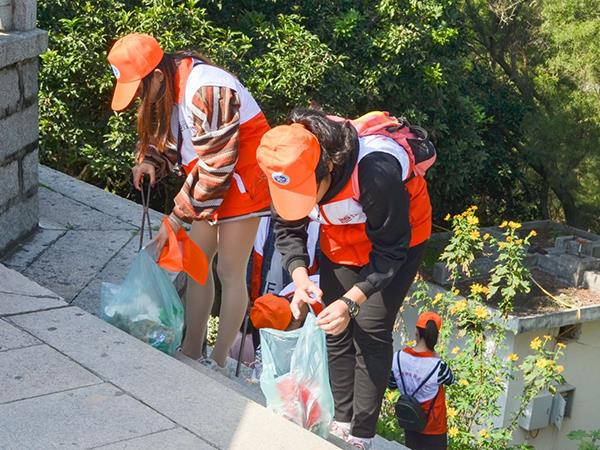 参加环保行动的志愿者们,个个干劲十足,从山下停车场到山顶万寿塔,认真清理沿途的垃圾,并且对途径的每一个凉亭都进行了清扫。