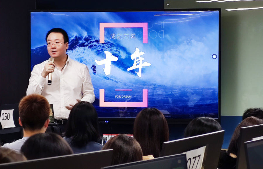 周宏董事长表达了对同学们的欢迎和期望,并以“十年”为主题进行了开课分享,鼓励同学们不断汲取新知识充实自己,学会正确的规划自己的未来。同时,也希望同学们在学习时,摒弃小路捷径,坚持阳光正道,爱国爱家,遵纪守法,报效桑梓,情系母校。