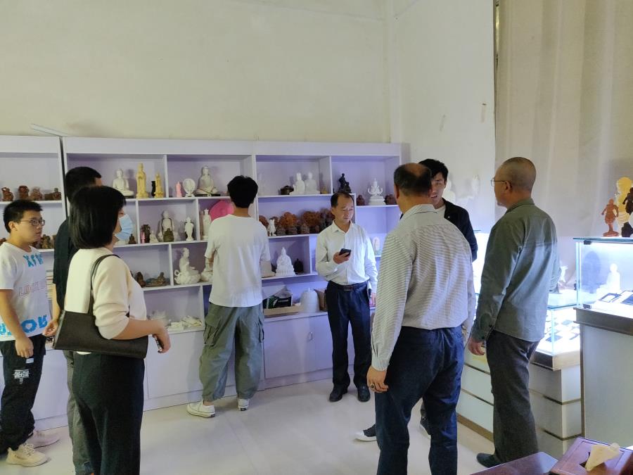 2020年9月29日,工艺美术学院校企办主任郑志明、艺术设计教研室主任林婷、玉石雕刻大师许元潘、艺术设计专任教师傅逸娴以及宝玉石五年专16级全体学生在张建华院长的带领下赴辉腾数控雕刻设计公司、唐煌数控雕刻文化有限公司参观交流,辉腾数控雕刻设计公司总经理、唐煌数控雕刻文化有限公司总经理热情接待了院校一行。