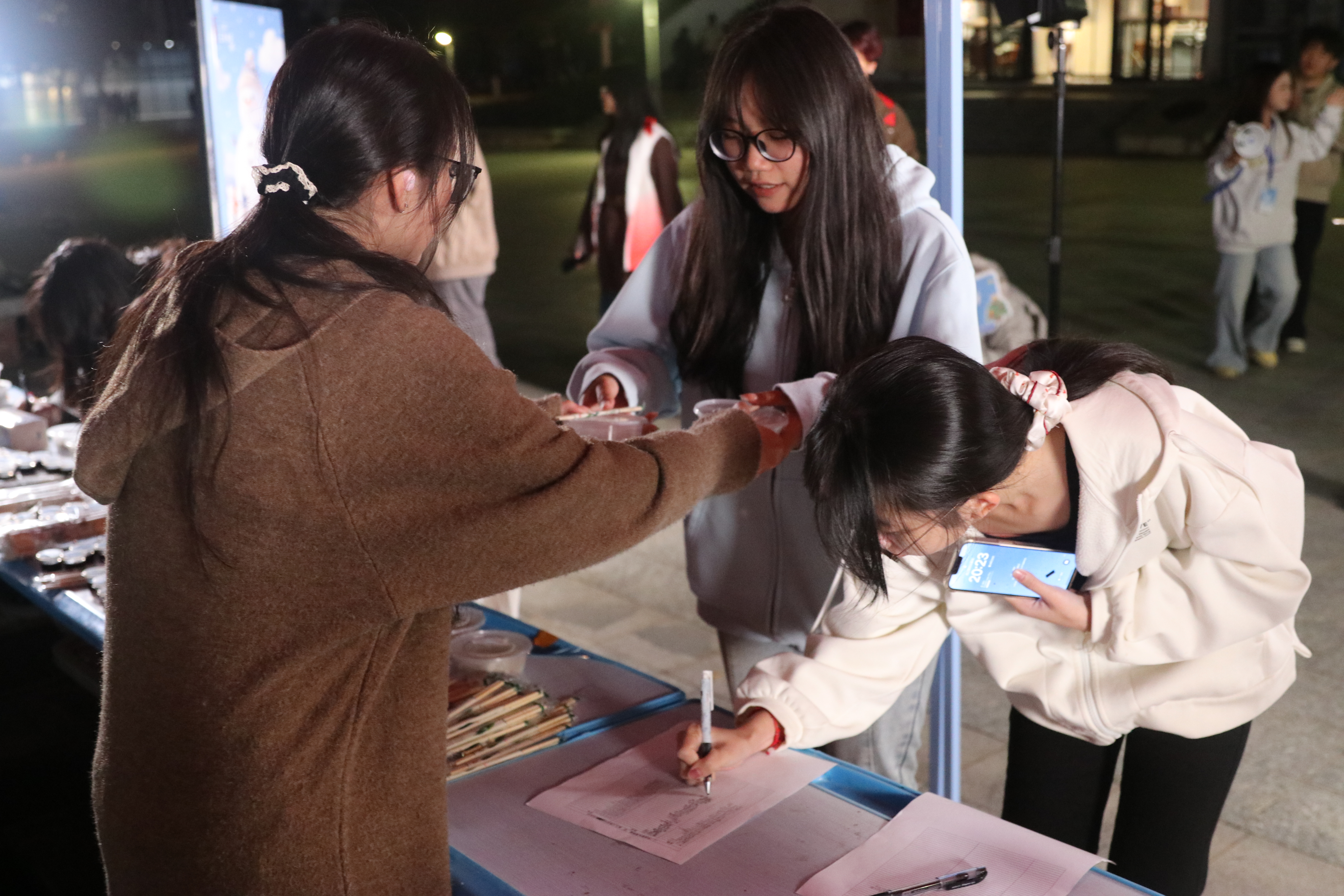随着活动推进,热闹氛围愈发浓厚,青木音乐社的同学拿起话筒倾情演唱,歌声在夜色里回荡,为活动增添了别样的青春氛围。