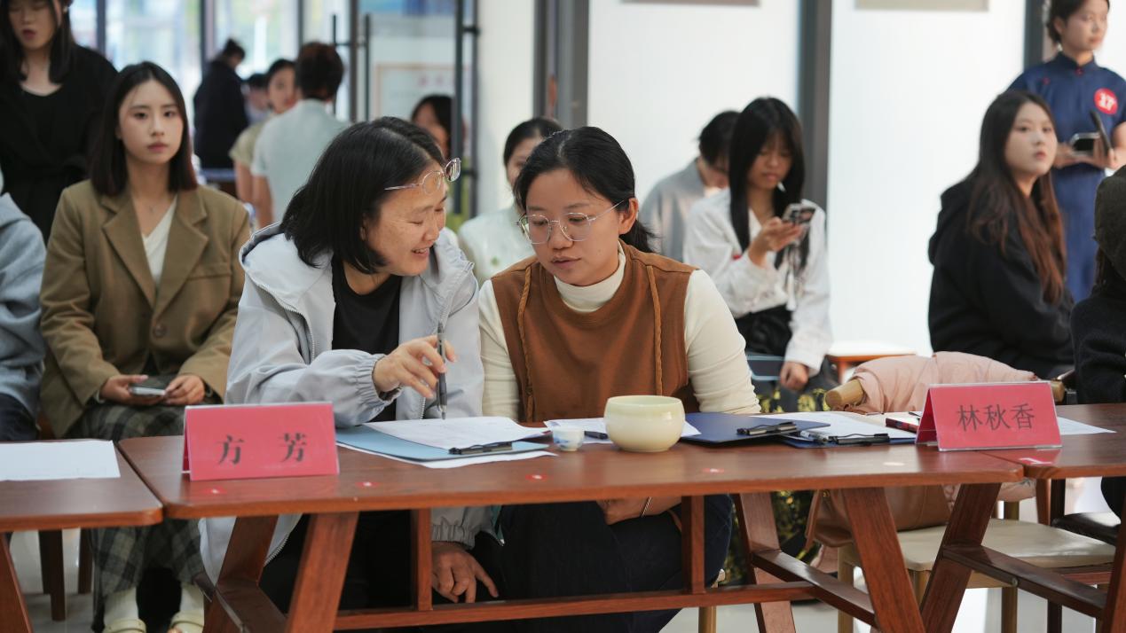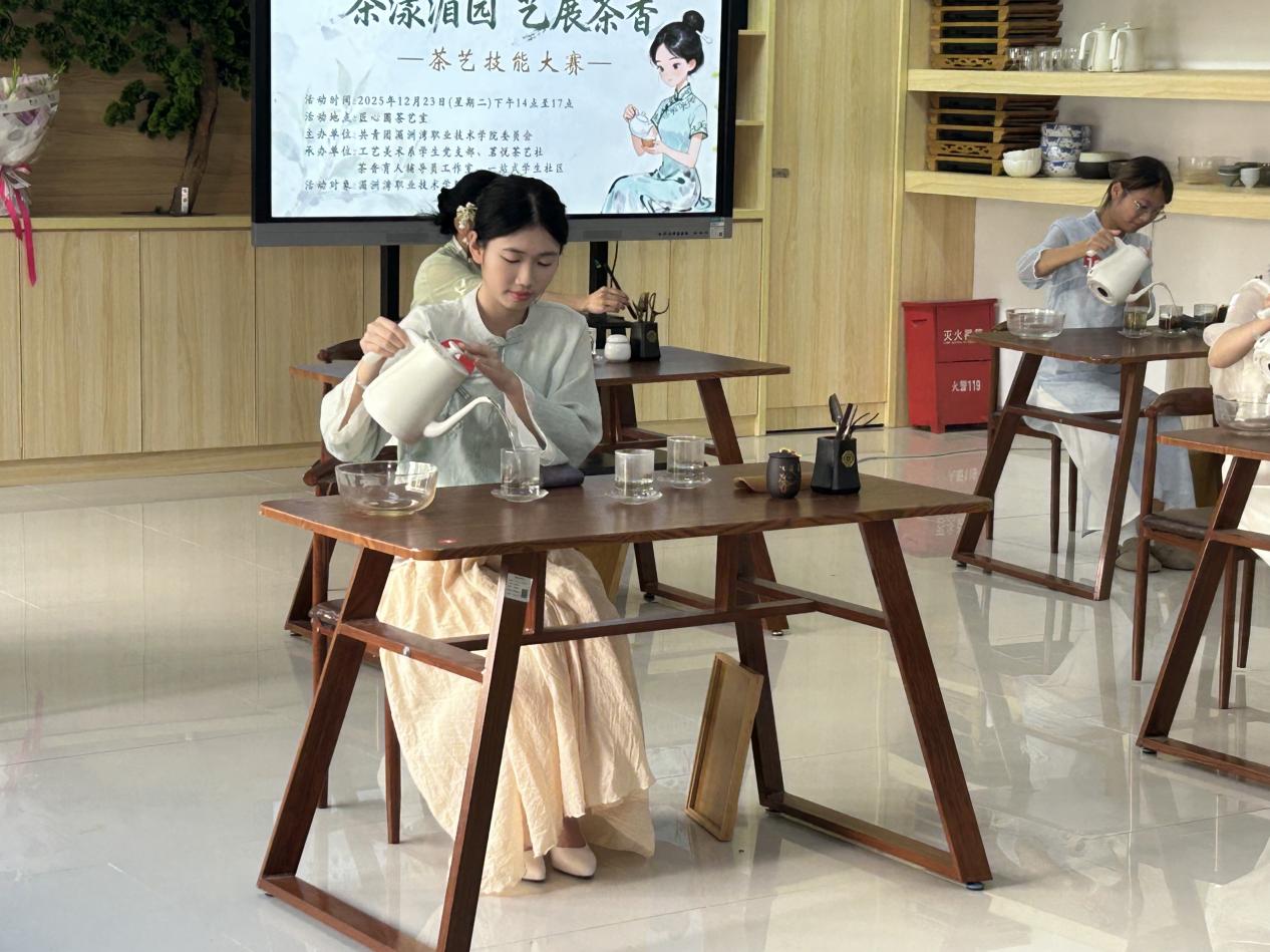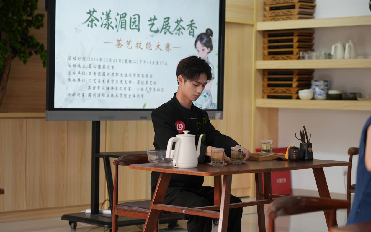 2025年12月23日下午,茗悦茶艺社在匠心圆茶艺社成功举办“茶漾湄园,艺展茶香”茶艺技能大赛。本次大赛由共青团湄洲湾职业技术学院委员会主办,茗悦茶艺社、工艺美术系学生党支部、一站式学生社区与茶香育人辅导员工作室共同承办。活动特邀国家一级茶艺师、莆田学院副教授方芳,以及国家一级茶艺师林秋香担任评委,工艺美术系教师林显作为嘉宾到场。大赛汇聚了全校众多茶艺爱好者,大家以茶为媒、以艺为桥,于一招一式中生动演绎中华茶文化的千年雅韵。
