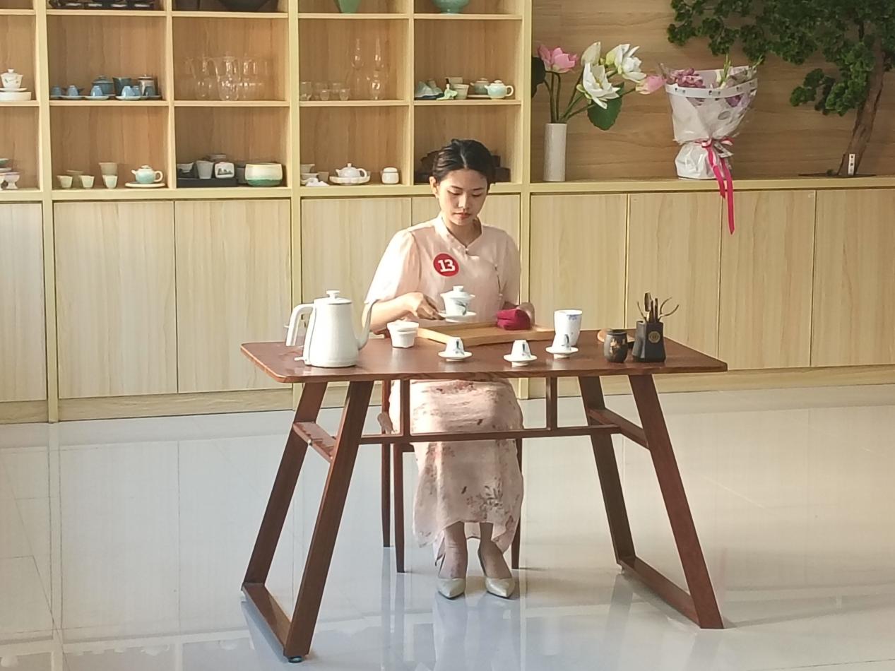 为确保比赛专业性与规范性,主办方赛前为参赛选手开展线下专项培训,重点传授红茶盖碗茶艺与玻璃杯茶艺的核心技法,帮助选手夯实技能基础。比赛当天,所有选手通过抽签分为两组,分别进行对应茶艺形式的展示。赛场之上,统一的茶样、器具与背景音乐营造出雅致庄重的氛围,选手们按抽签顺序依次登场,温杯洁具、置茶注水、润叶出汤,每一个动作都娴熟流畅、仪态优雅。他们以专注的神情、规范的流程和富有美感的演绎,将茶艺的宁静与灵动展现得淋漓尽致,让现场观众沉浸式感受 “一杯清茶藏天地” 的文化意境。