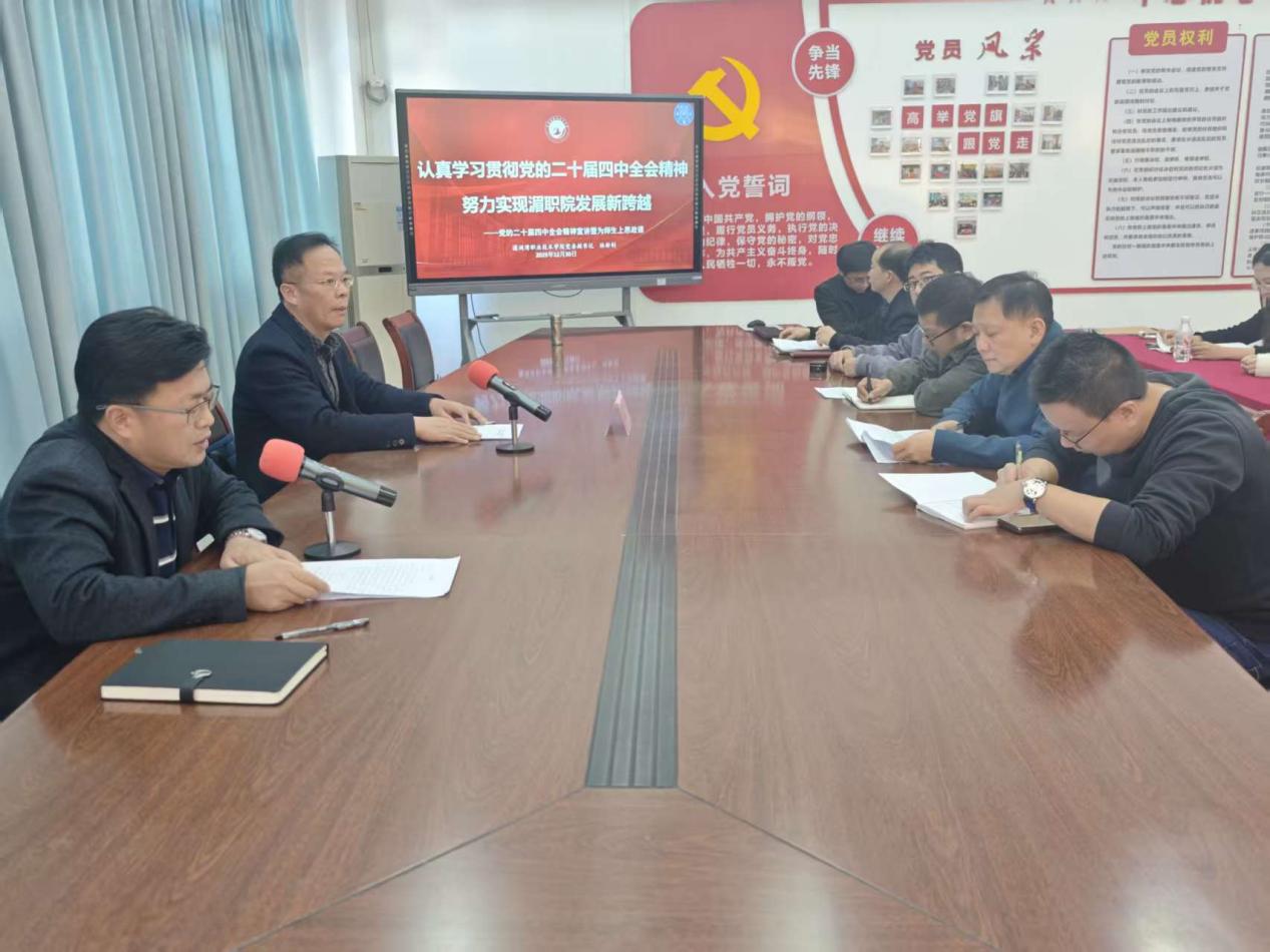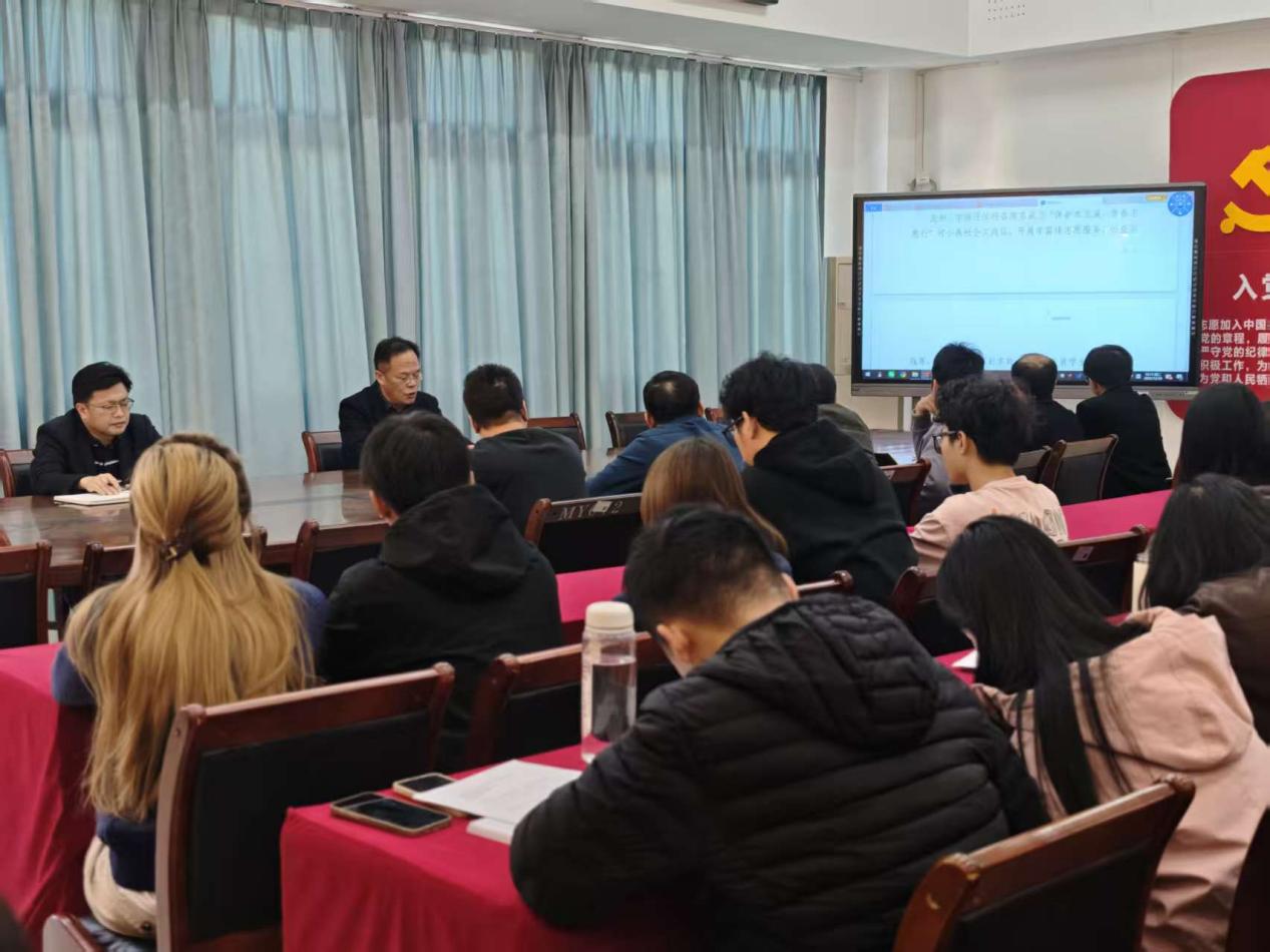 12月30日,学院党委副书记林新钊深入工艺美术系,宣讲党的二十届四中全会精神,并为师生讲授思政课。系部全体教师、党员干部和学生代表参加。系党总支书记林建洪主持活动。