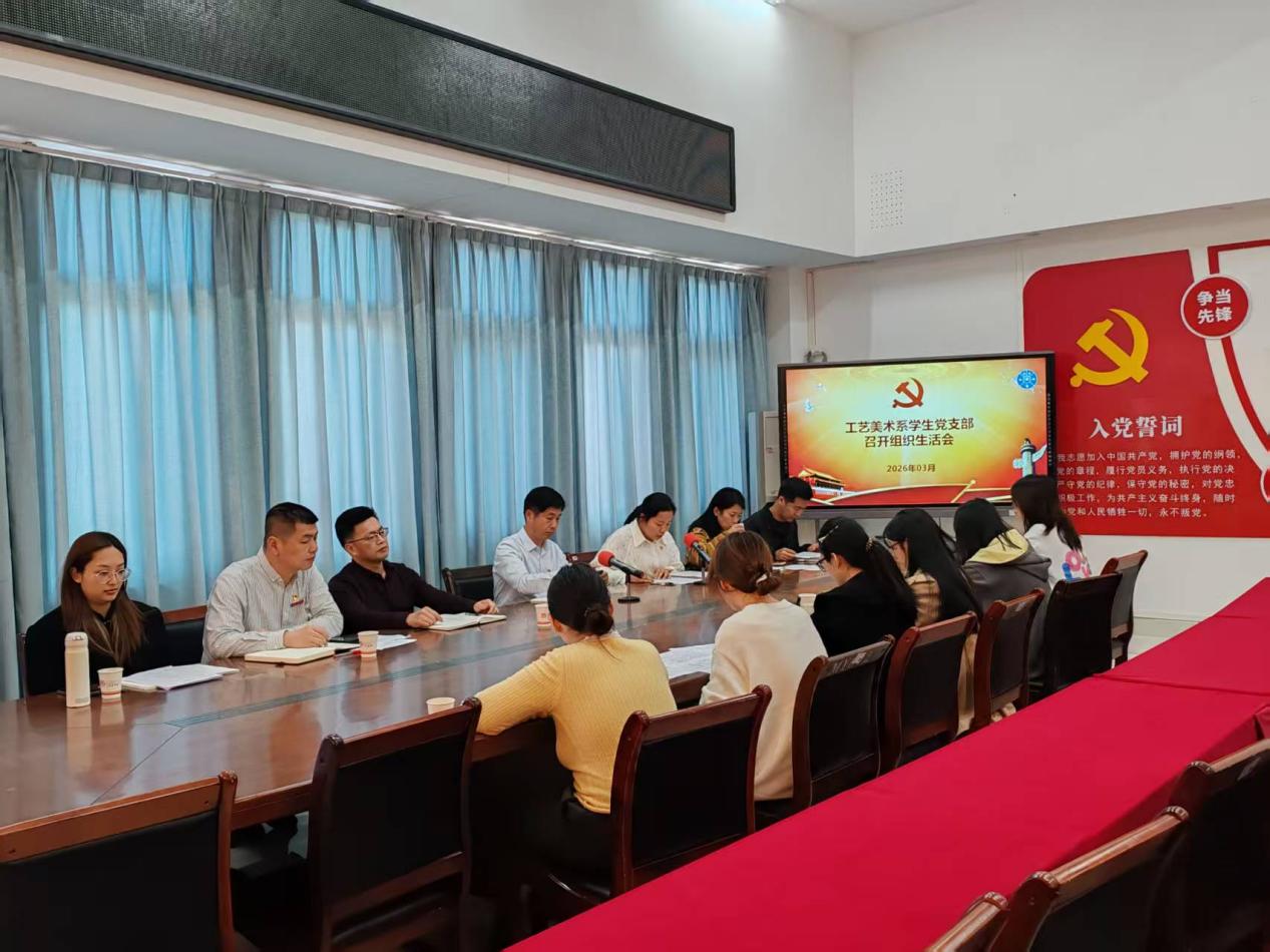 2026年3月26日上午,工艺美术系学生党支部在工艺楼北403党员活动室召开2025年度组织生活会暨民主评议党员会议。会议由党支部书记林秋香主持,支部党员参加会议,后勤处处长李锜、系党总支书记林建洪列席本次会议。